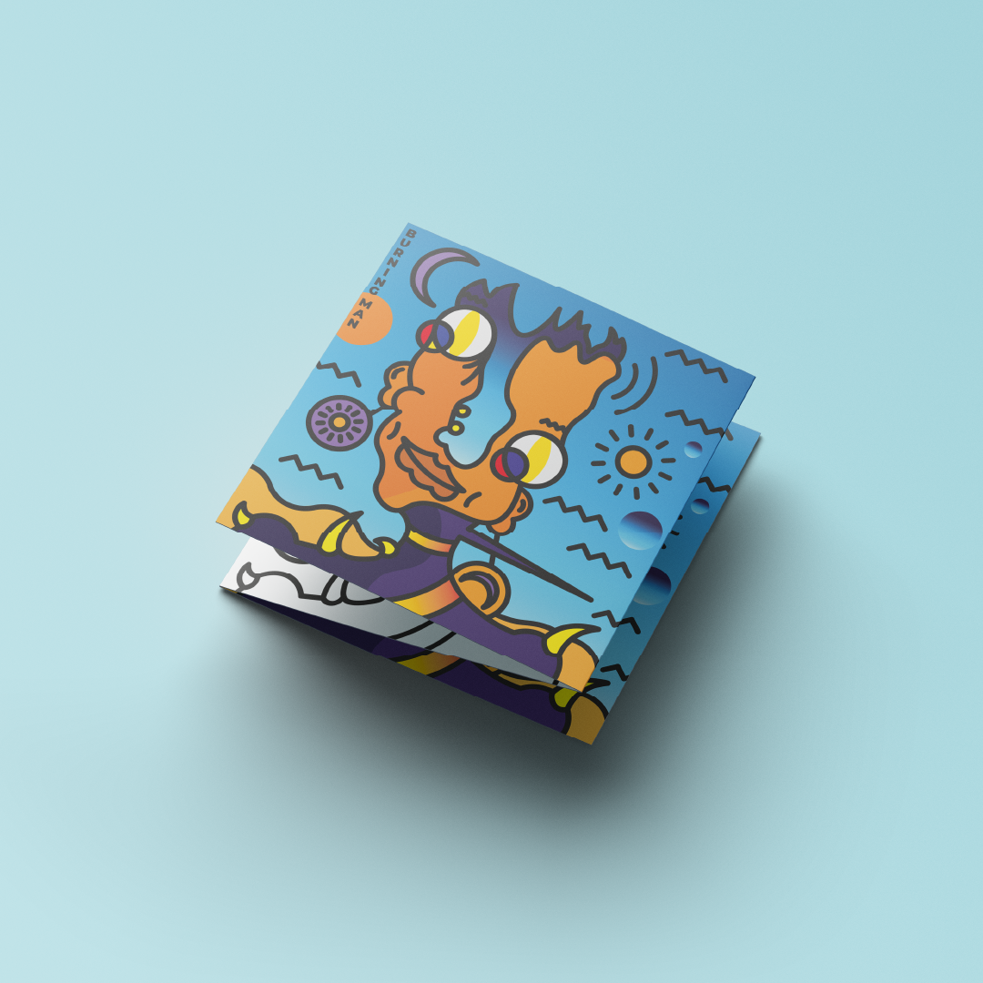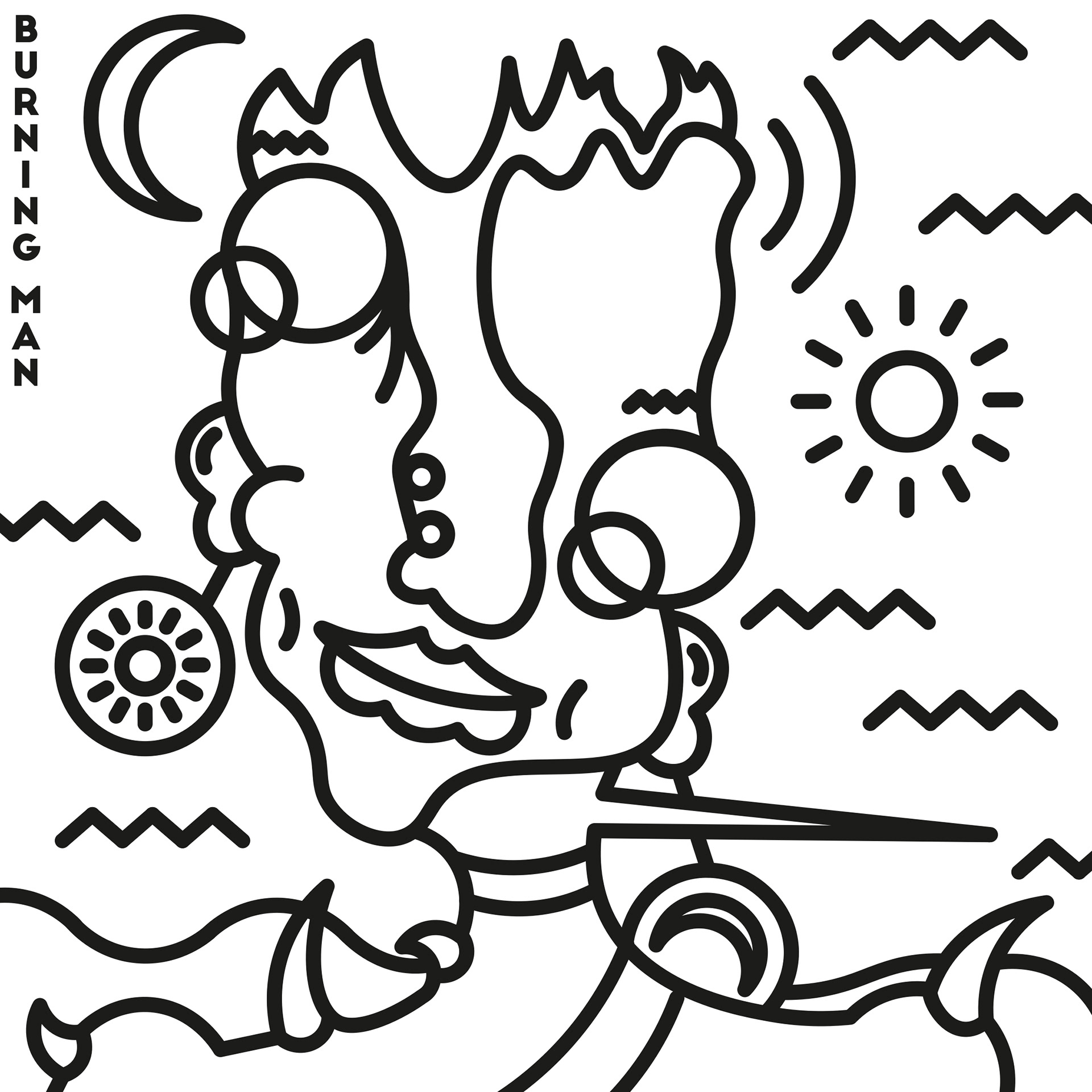 This abstract drawing made on Illustrator represents a unique humanoid enjoying himself even in a very hot environment.