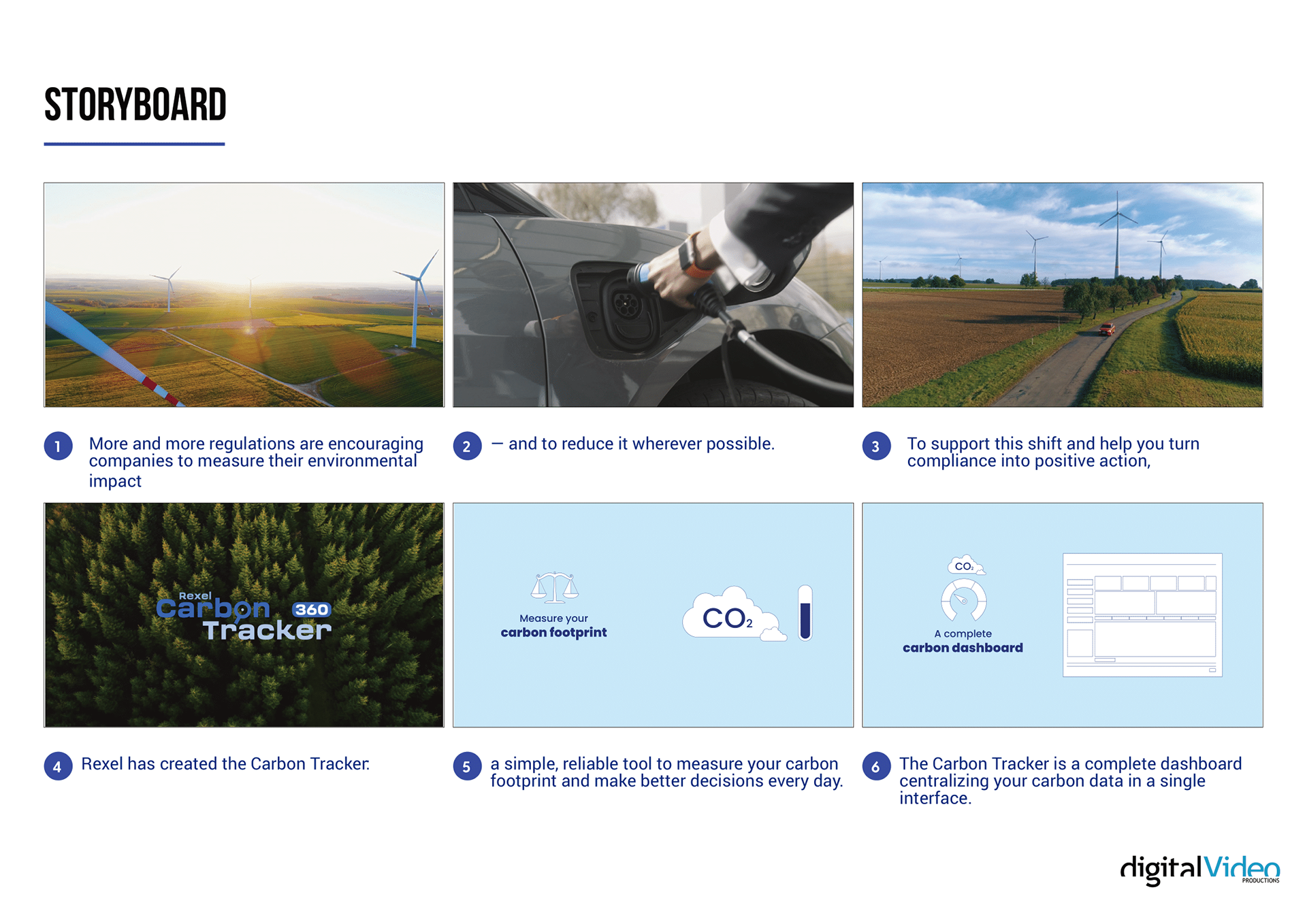 While working for Digital Video, I created a storyboard explaining the benefits of Carbon Tracker, a tool launched by the company Rexel to promote a more sustainable industry.