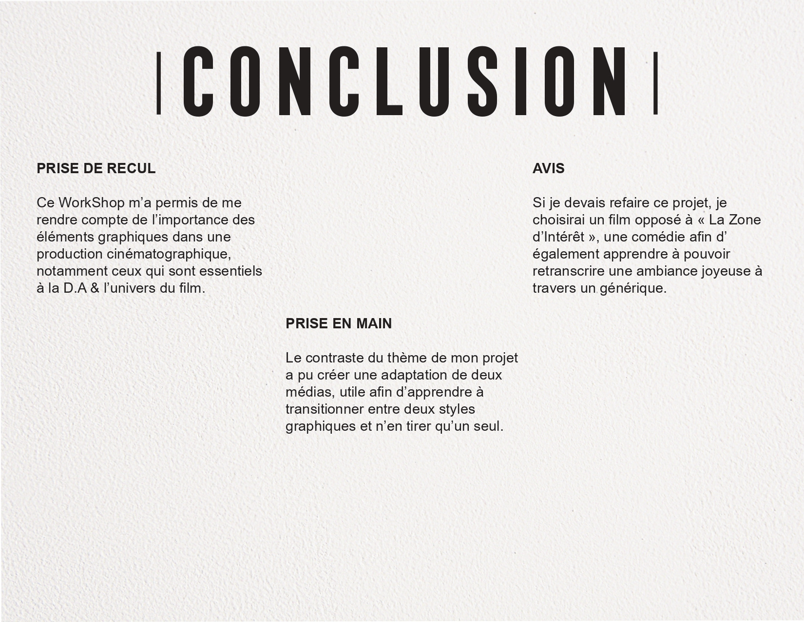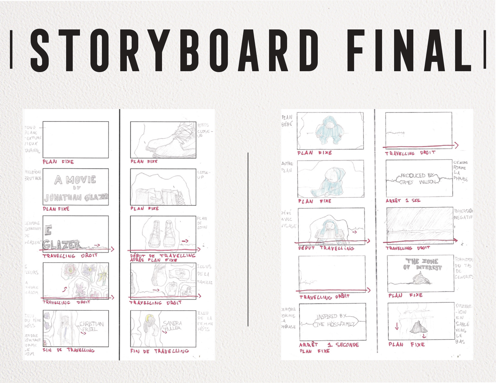 This is the presentation (in french) of the storyboard and my brainstorming about the project "The Zone of Interest".